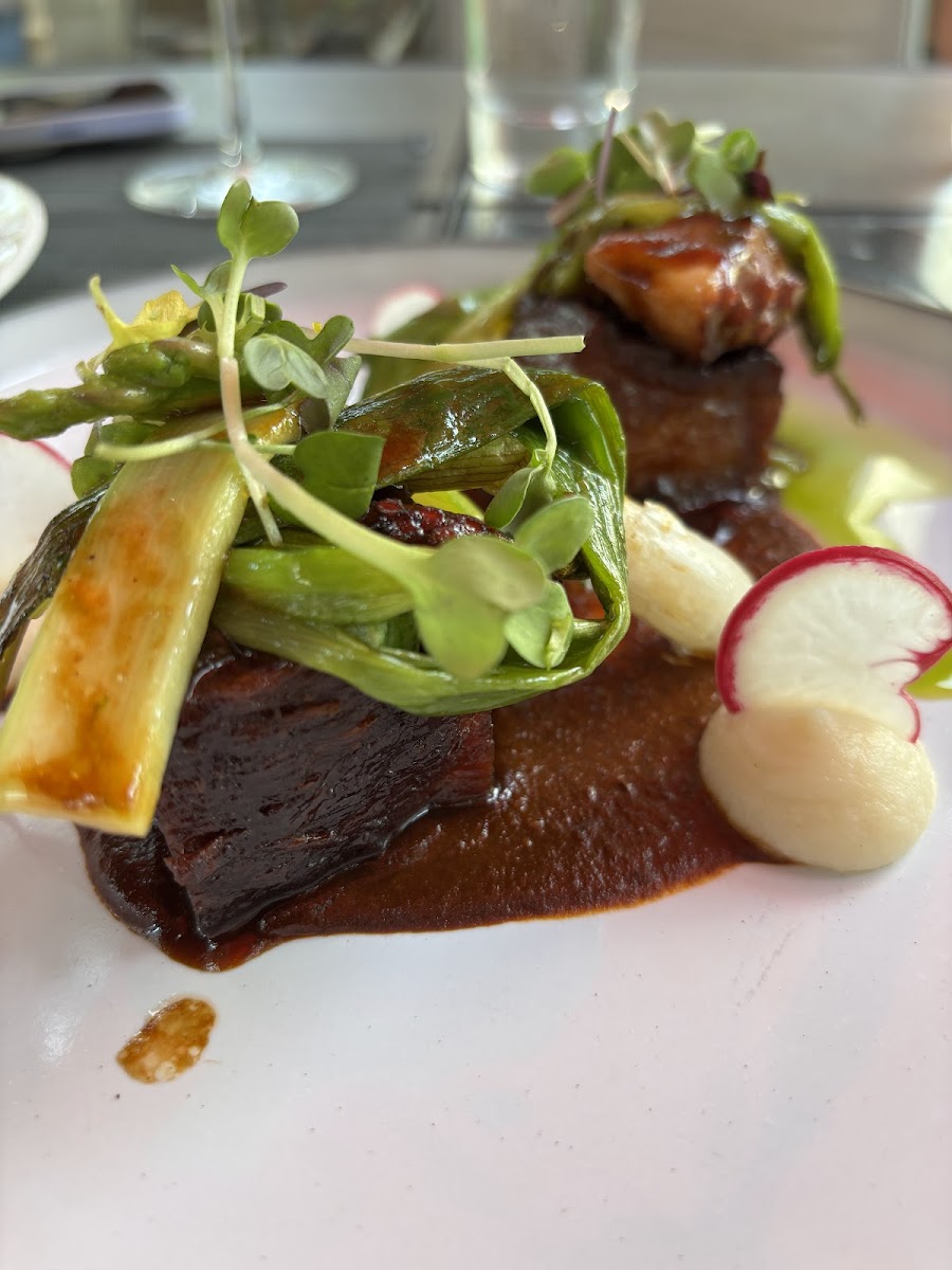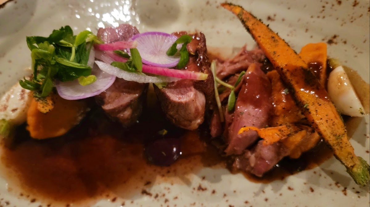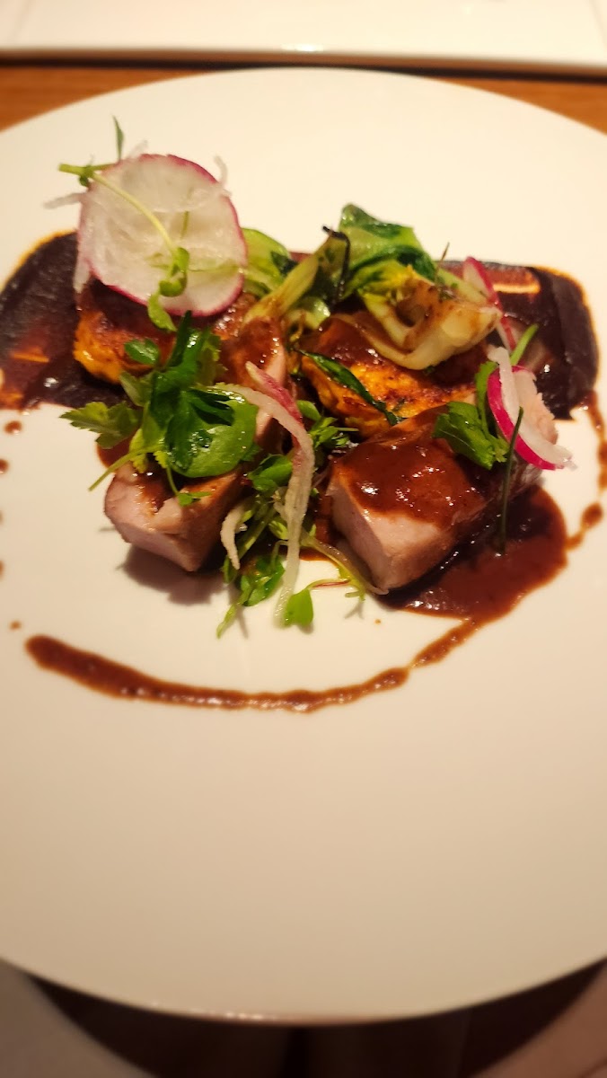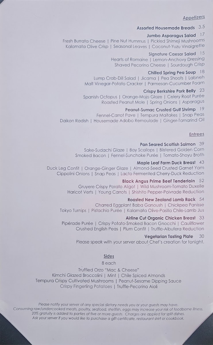 The entrees shine with creative flair, but don’t miss the Maple Leaf Farm Duck Breast ($40)—a succulent dish featuring duck leg confit, winter truffle polenta, and Syrah glazed pears. Each component complements the duck perfectly, elevating your meal to new heights. For seafood lovers, the Scottish Salmon Lump Crab "XO" ($38) showcases the fish in a fragrant lemongrass dashi broth that is nothing short of sublime.
